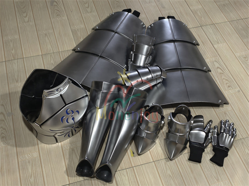 【セイバー鎧装備 仕様書 (仕上げ:ABS真空成形+人工革/FDM)】 ■ 構成パーツ1. 前後胸甲(ぜんこうきょう:Front/Rear Cuirass) 2. 腕甲(うでこう:Arm Guards) 3. 脛甲(すねこう:Greaves) 4. 靴甲(くつこう:Sabatons) 5. スカートアーマー(スカート甲:Fauld) 6. ガントレット(手甲:Gauntlets)※皮革+FDM造形 ■ 材質 - 主要鎧部:ABS真空成形 - 手甲部:皮革+FDM積層造形 ■ サイズ体系 | サイズ | 体重目安 | 胸甲長 | 肋骨周囲 | 備考 ||-------|---------|-------|----------|------|| S | 80-95斤 (約36-43kg) | 35cm | 71cm | || M | 95-110斤 (約43-50kg) | 35cm | 74.5cm | || L | 110-130斤 (約50-59kg) | 35cm | 78cm | | ■ 脚甲サイズ | 部位 | 全長 | 最大周囲 | 身長目安 ||------|------|----------|----------|| 脛甲 | 38cm | 41cm | 165cm未満/165cm以上で調整 |