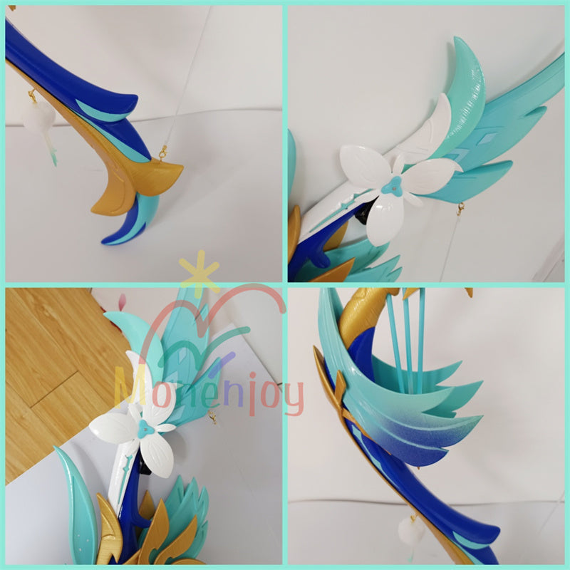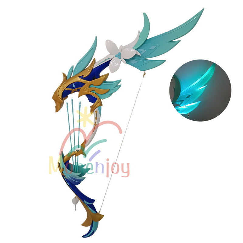 Monenjoyが贈る原神(げんしん)の人気キャラクター、ウェンティの象徴的な武器「暁を告げる歴史」を忠実に再現したコスプレ道具です。この弓モデルは全長110cmで、PVCとPLA素材を組み合わせた耐久性に優れた作り。最大の魅力は発光機能で、夜間のイベントや写真撮影で幻想的な雰囲気を演出します。コスプレイヤー必携のアイテムとして、細部までこだわったデザインが原作の魅力を引き立てます。